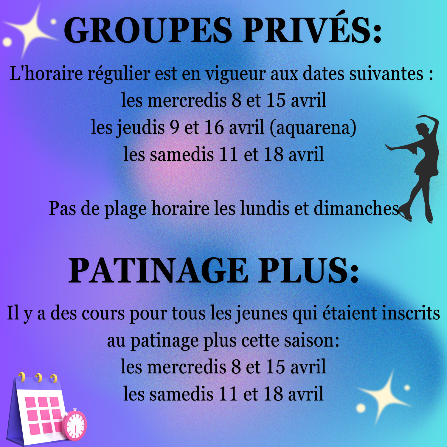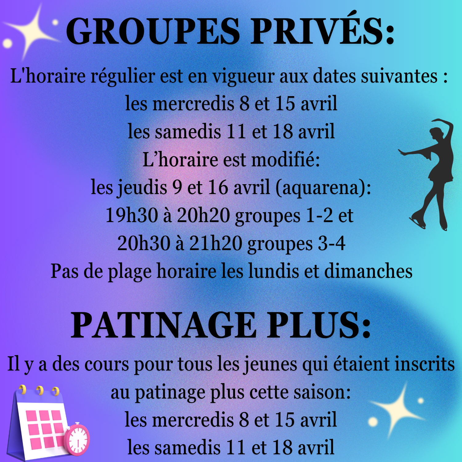 18 au 22 août 2025: Semaine pré-saison pour les patineurs et patineuses inscrits aux groupes privés pour la saison 2025-2026